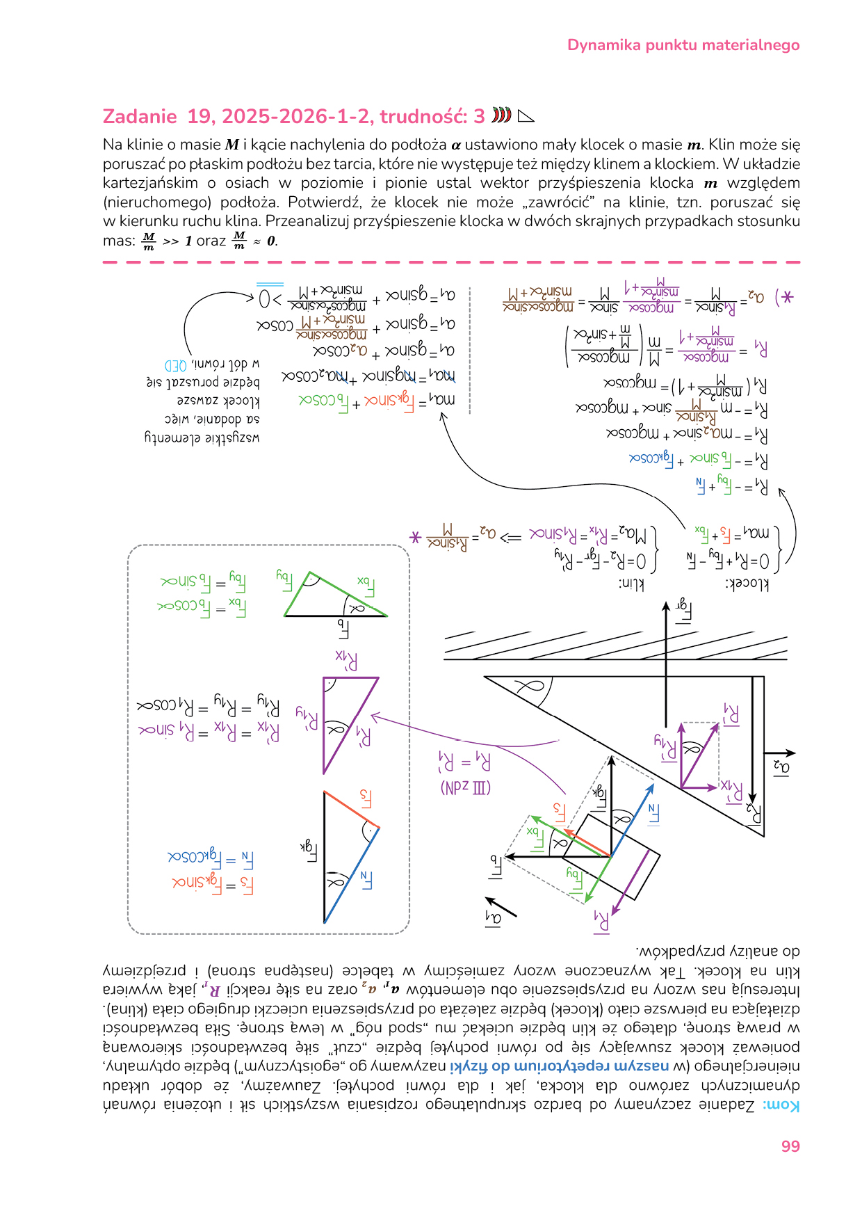 - Rozdział 3: Dynamika punktu materialnego (Zadania ogólne, Zadania z masą zredukowaną, Zadania z klinem)