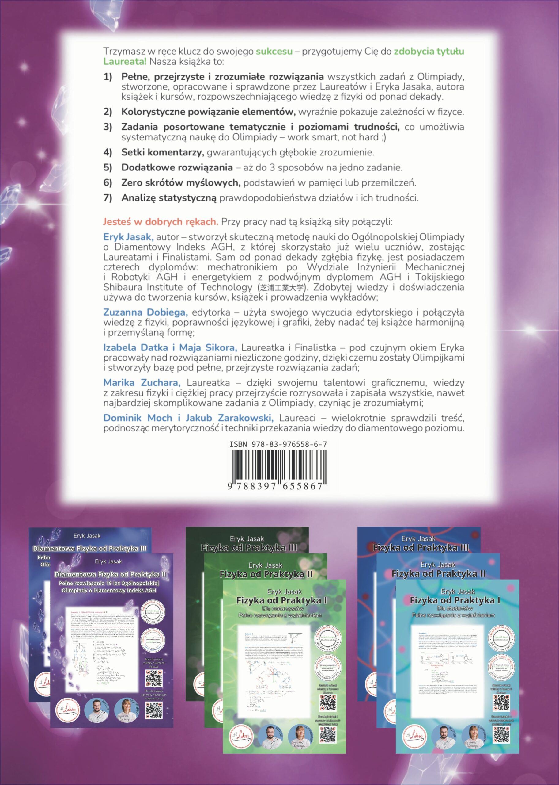 Ta książka to kompletny zestaw narzędzi do samodzielnego przygotowania się do Olimpiady. Jeśli chcesz wzmocnić swoje podstawy, sięgnij po podręcznik z serii „Fizyka od Praktyka”, który idealnie się z nią łączy. Dzięki logicznemu podziałowi i uporządkowanej progresji trudności wejdziesz na olimpijski poziom metodycznie, z poczuciem pełnej kontroli nad materiałem.